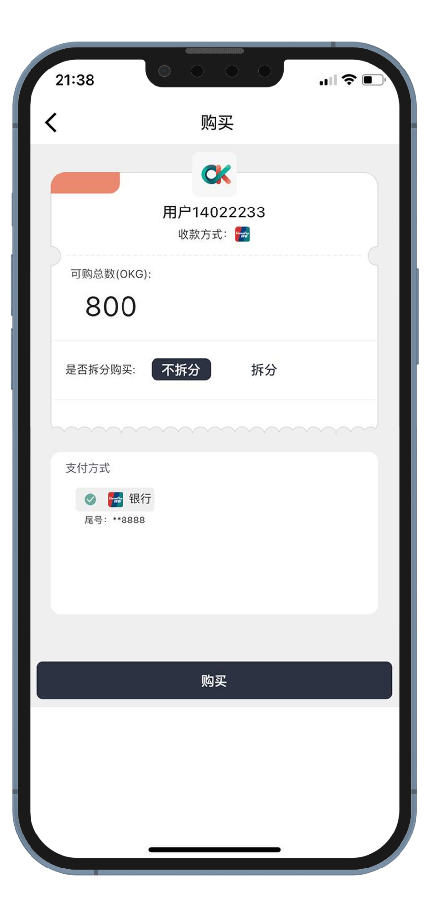 选择您要购买的金额订单