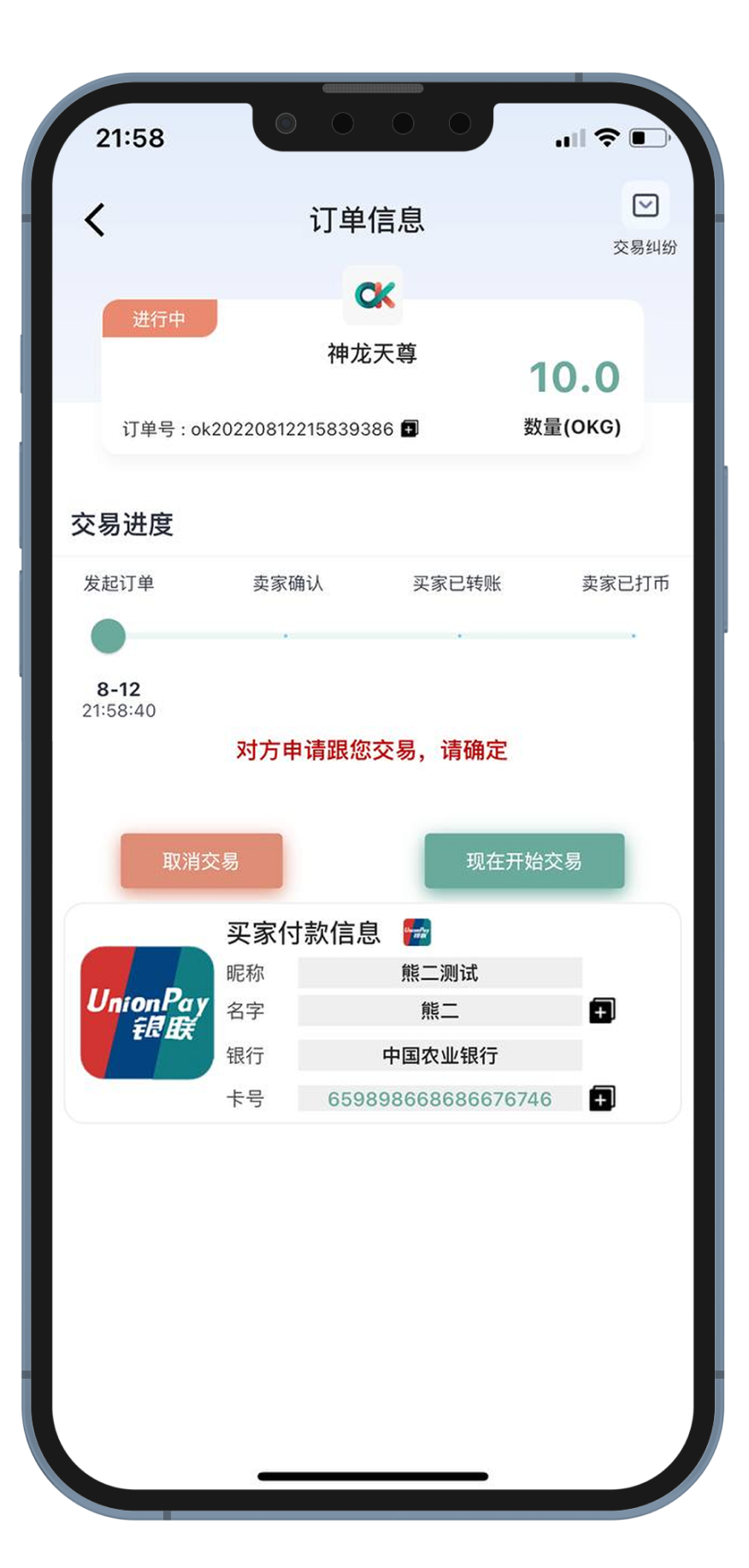 等待卖家核实金额之后进行打币 买币交易完成