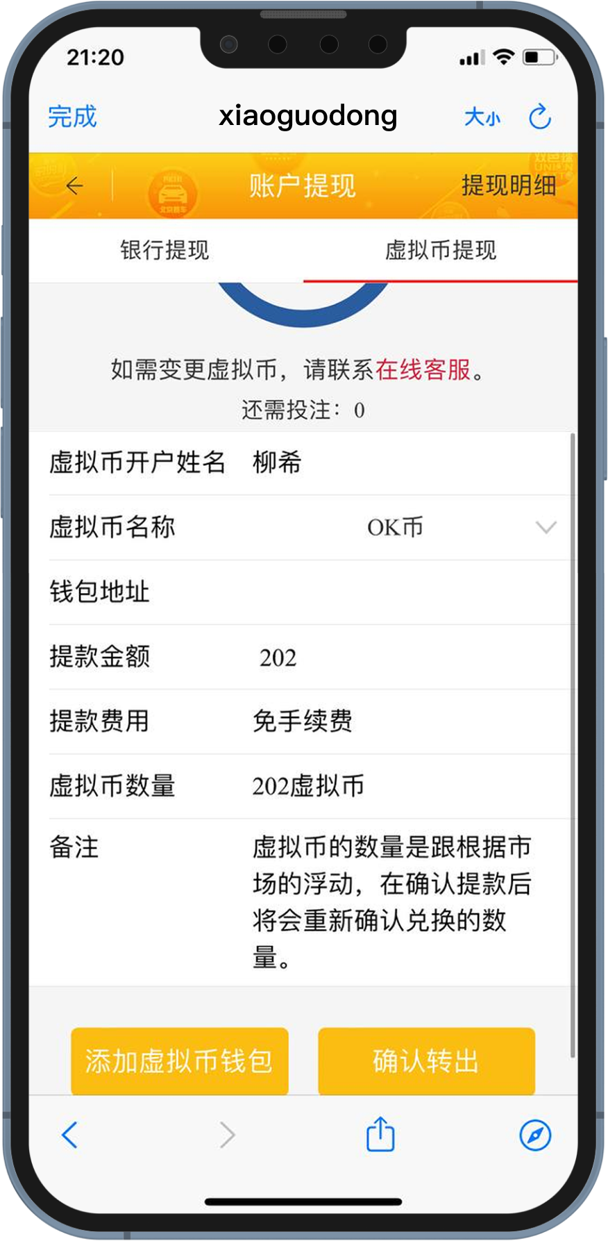 选择Ok钱包出款,输入出款金额